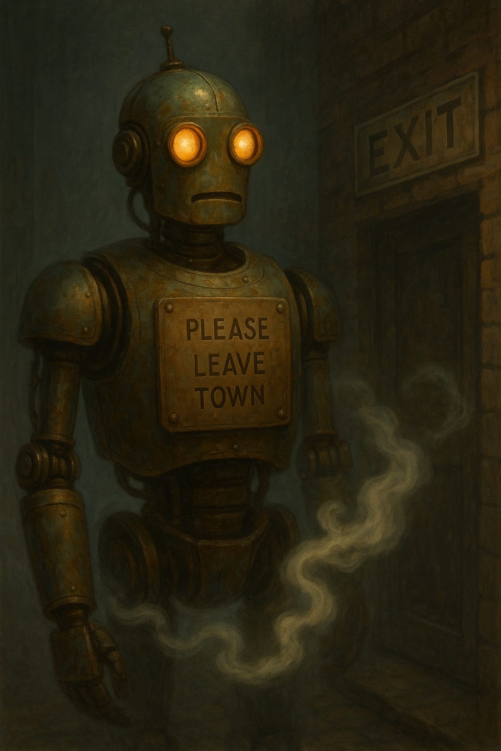 It uses the GPT AI Character/Chatbot interface to deliver not just one character but a multi-character storyworld to explore. You find yourself in a strange town populated by an eclectic mix of human and mechanical characters with ambiguous motivations and are free to set your own path of discovery.